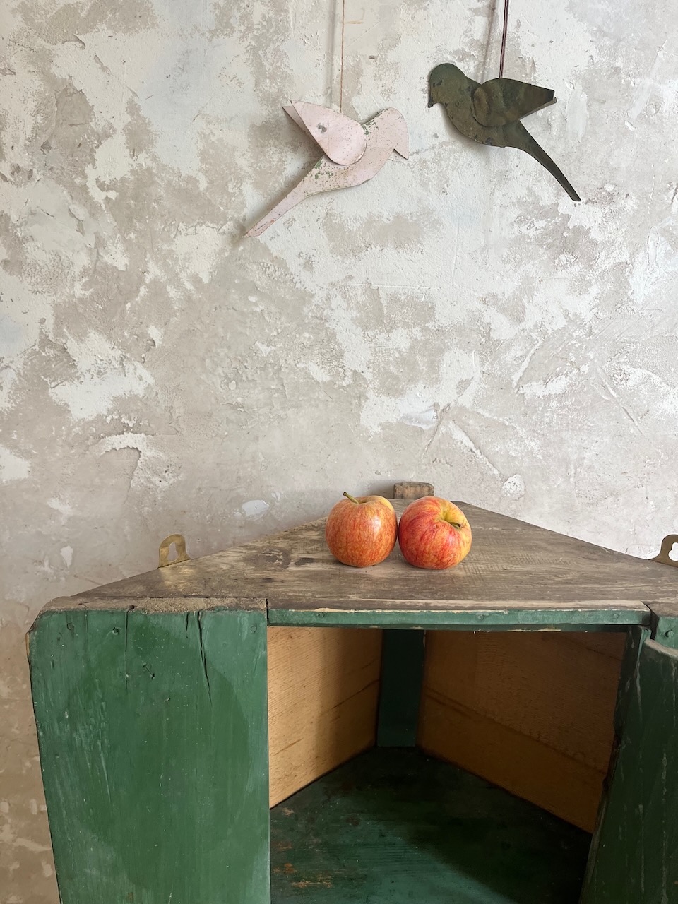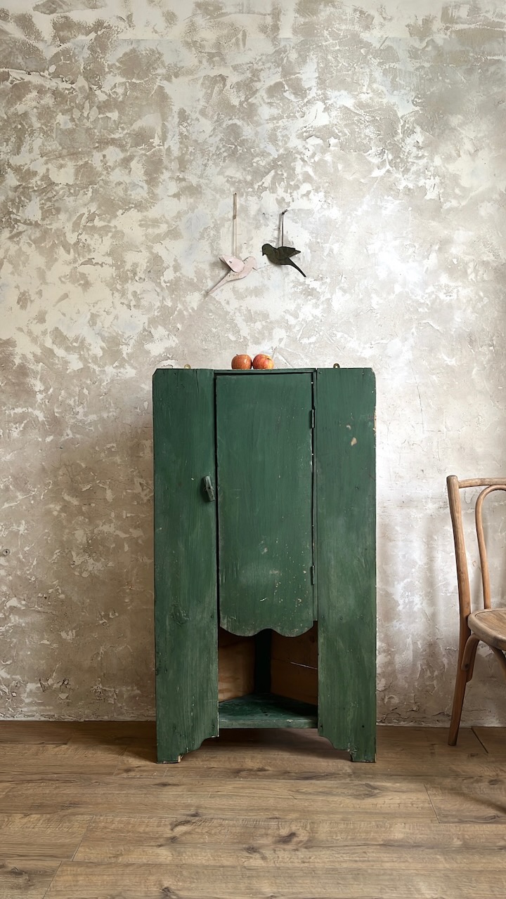 Superbe patine verte d’origine. Probablement la partie haute d’un meuble en deux pièces.