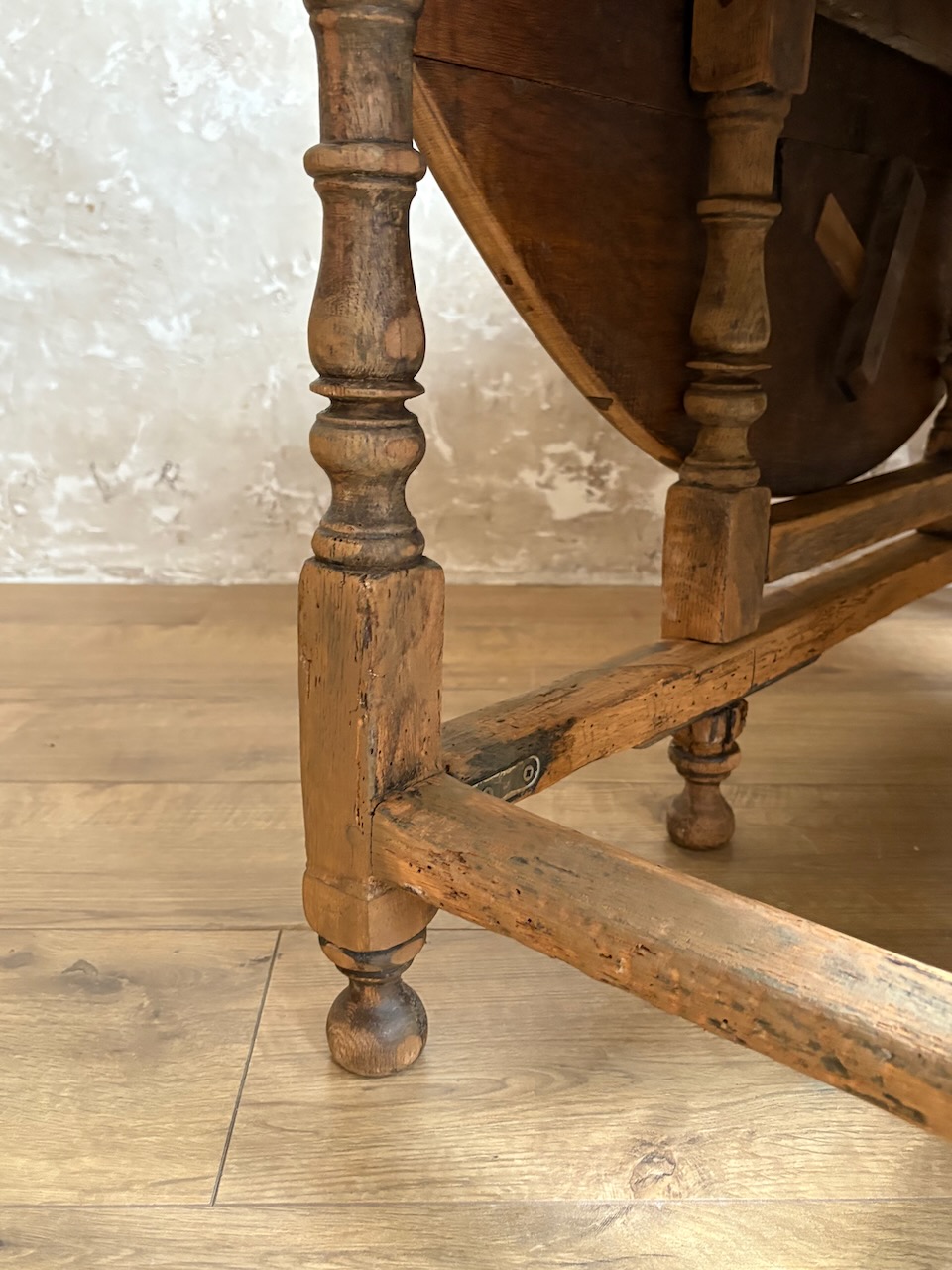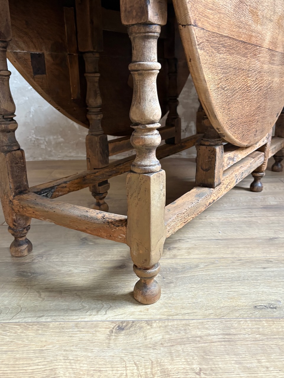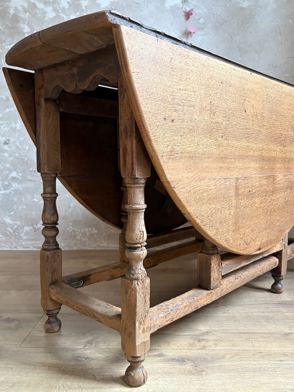 Table gateleg ancienne du début du XXᵉ siècle, réalisée en chêne massif.