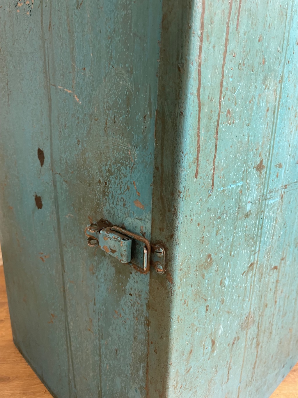 Un système de sécurité bloque le tiroir, qui se ouvre uniquement avec la porte ouverte. Ce système me fait penser aux meubles militaires.