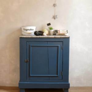 L’intérieur ainsi que les tiroirs ont été peints dans la même teinte pour une harmonie parfaite. L’extérieur a été protégé par une cire fixatrice, conservant ainsi l’aspect brut et authentique de la patine.