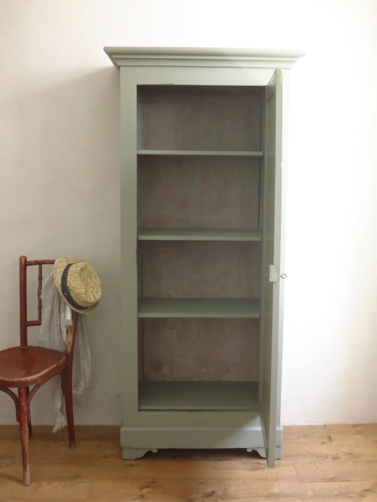 En regardant cette armoire je plonge dans les années 30. Je me retrouve dans la chambre d’une belle maison de campagne. En bas le parfum du café envahi l‘étage. Dehors, le bruit lointain des enfants qui jouent dans l’herbe fraichement coupé, j’arrive à en sentir l’odeur. C’est le moi de mai, le soleil réchauffe la pièce.
