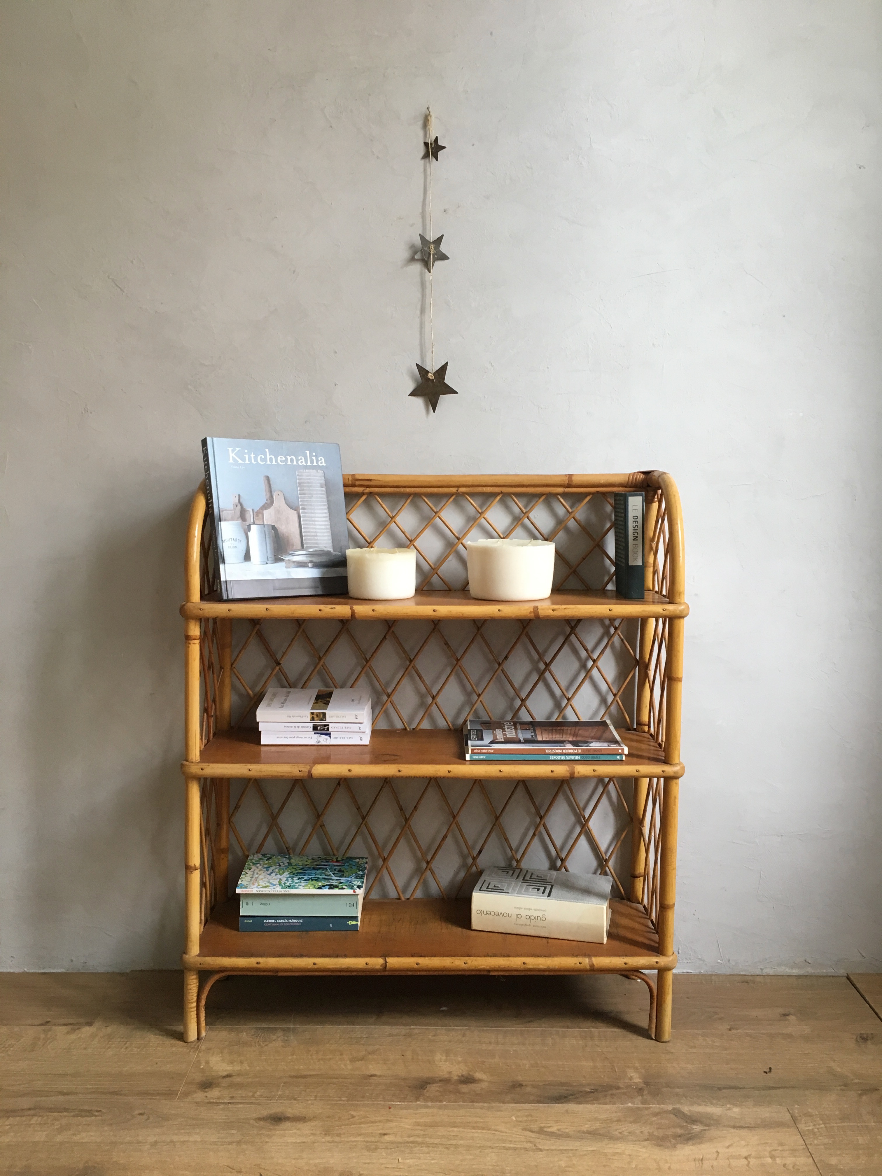 Petite bibliothèque en rotin.