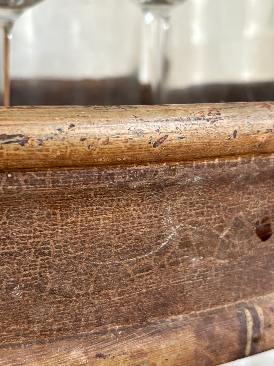 Le bois est joliment patiné, avec une belle douceur et les traces du temps qui lui donnent tout son caractère.