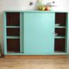 L’intérieur est doté de deux étagères, l’extérieur a été entièrement décapée et peint en vert diabolo.