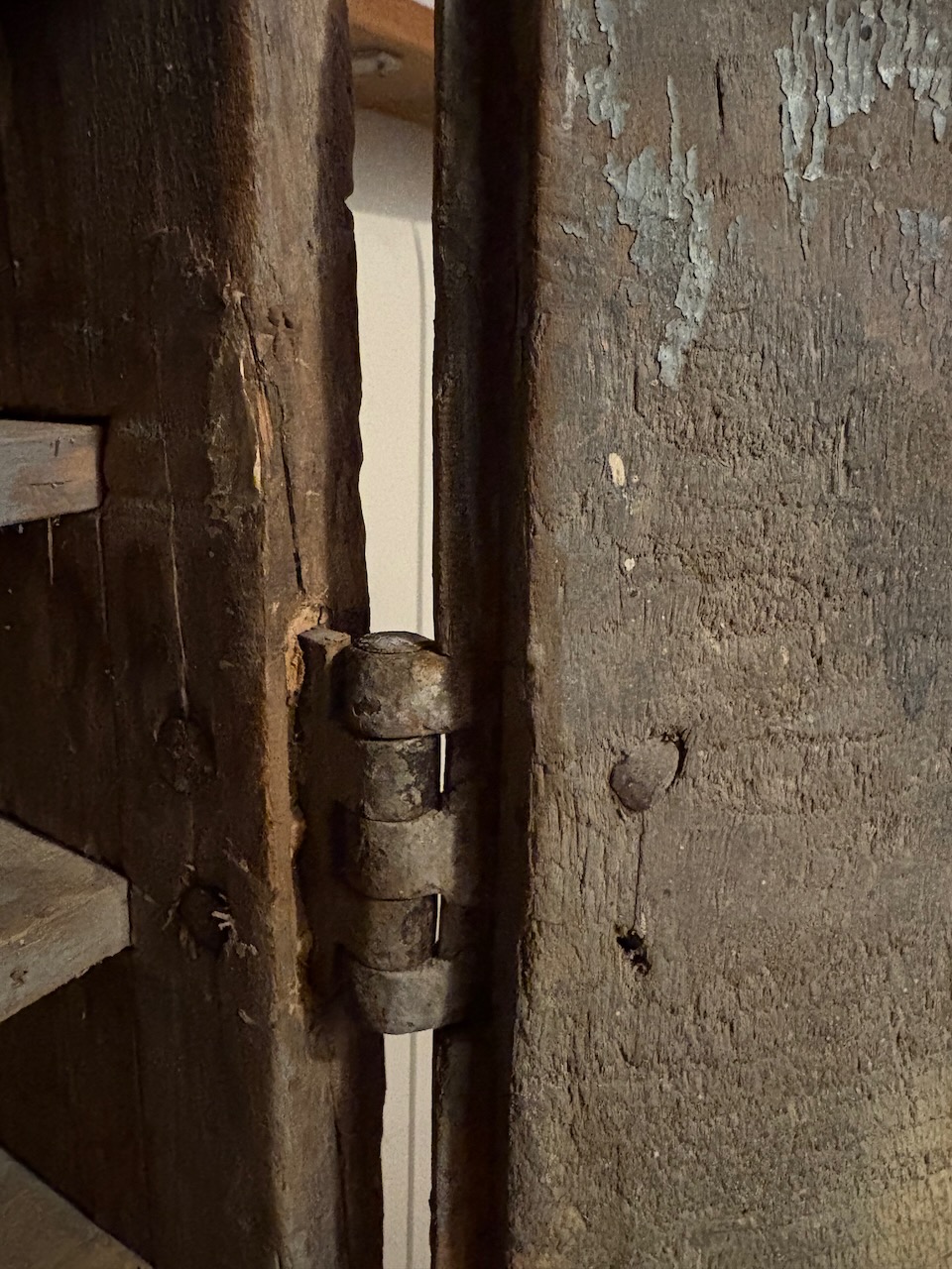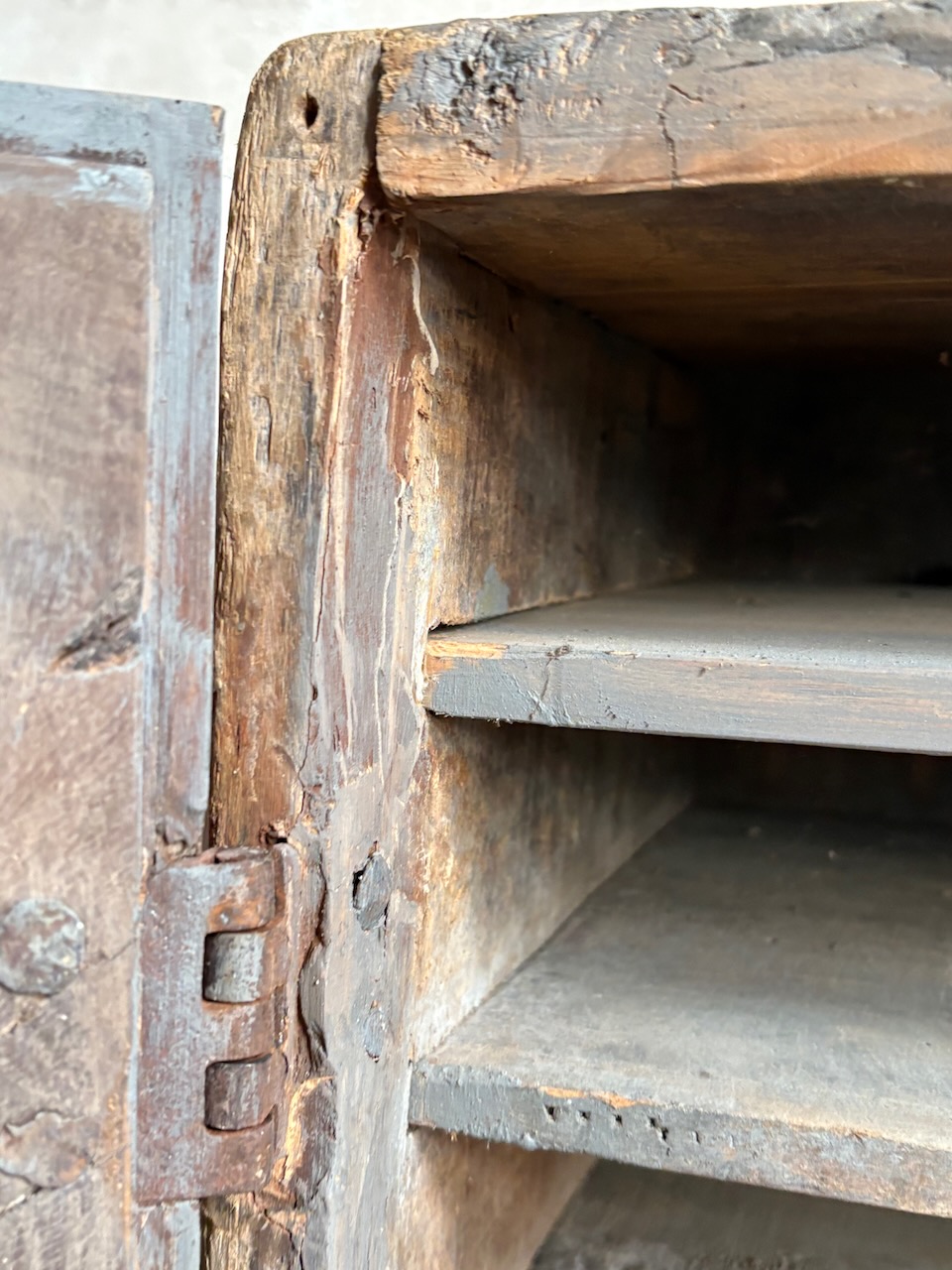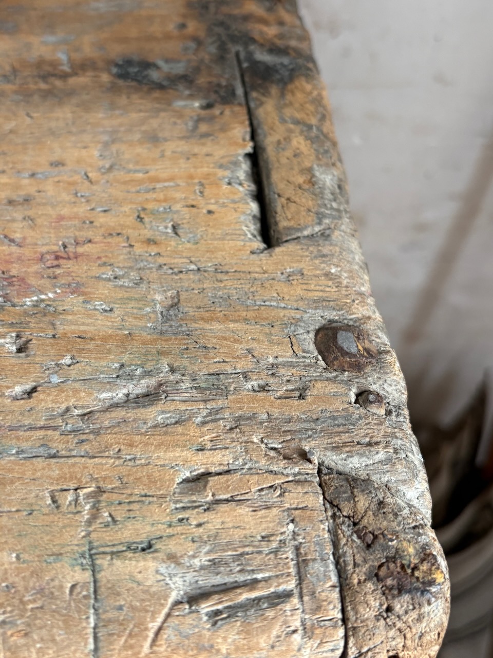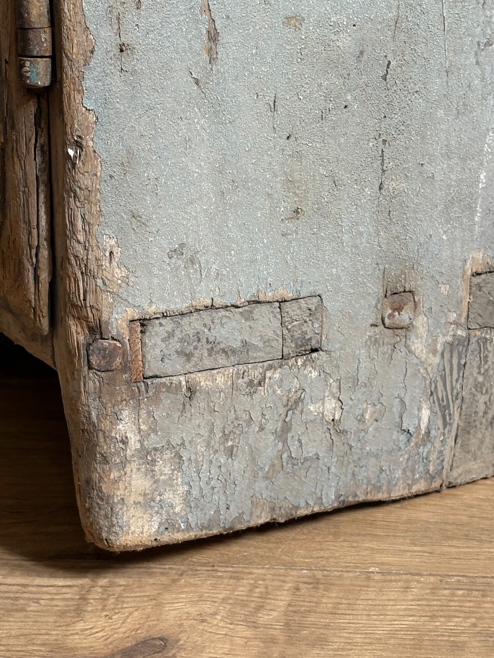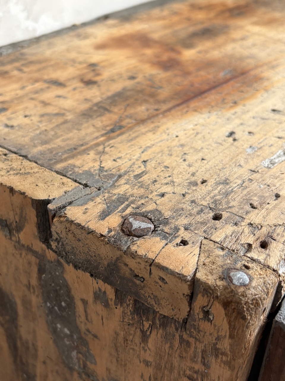 Magnifique travail d’assemblage : queues d’aronde, clous forgés, savoir-faire ancien visible à chaque détail.