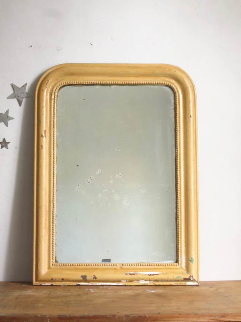 Miroir Louis Philippe en bois et plâtre, patine ocre.