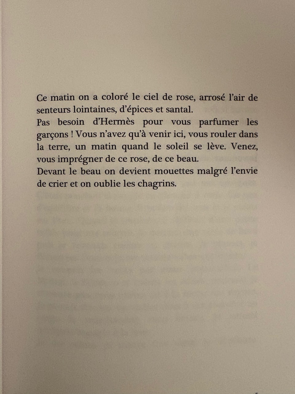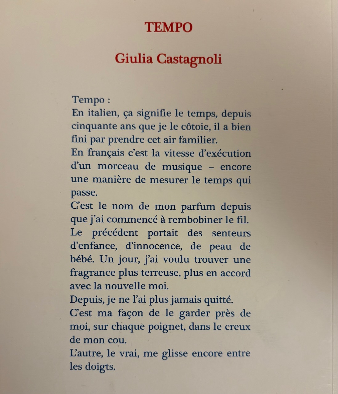 » C’est le nom de mon parfum depuis que j’ai commencé à rembobiner le fil. Le précédent portait des senteurs d’enfance, d’innocence, de peau de bébé. Un jour j’ai voulu trouver une fragrance plus terreuse, plus en accord avec la nouvelle moi. »