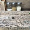 En bois massif, solide et robuste, il a été juste poncé et nettoyé pour préserver son charme de l’ancien. Comme le bois est piqué il a aussi été traité.